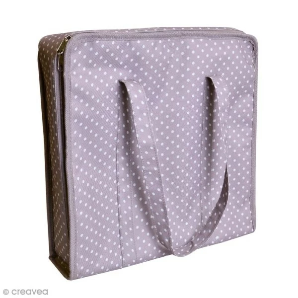 Ce sac de rangement Trolley en tissu taupe uni et à pois blancs est vraiment très pratique et astucieux ! Il vous permettra grâce à une fermeture sur l’intégralité du sac, et à des rangement intérieurs intelligents, d’organiser au mieux votre matériel de scrapbooking ou encore de couture.
