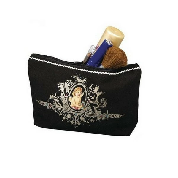 Description de Trousse en coton noir 350g/m², 21x 15 x 5 cm, avec fermeture éclair, sac de maquillage à customiser