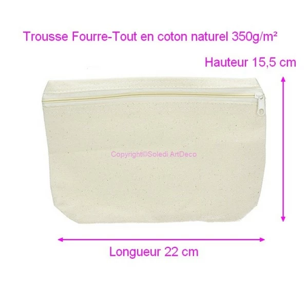 Description de Trousse Fourre-Tout en coton naturel 350g/m², Fourreau Haut. 15,5cm x Long. 22cm, à décorer