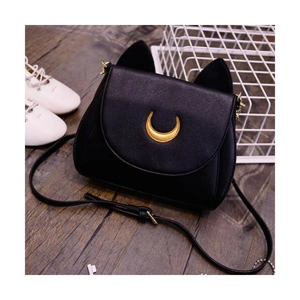 Description de Sac Bandoulière PU Noir Sakura Lune Kawaii Mignon