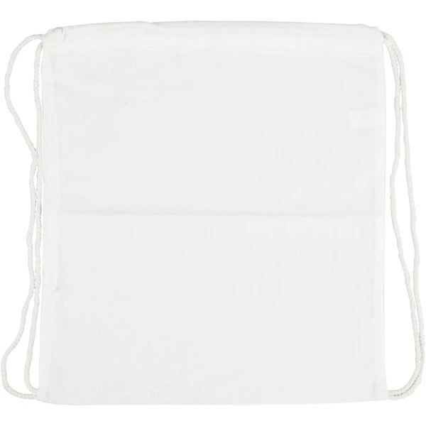 Sac Ă dos blanc 100% coton. Parfait comme sac Ă chaussures ou sac de sport.