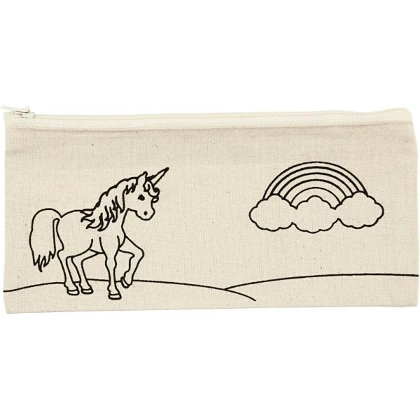 Description de Trousse en tissu Ă personnaliser – 9 x 21 cm – Licorne – Naturel clair