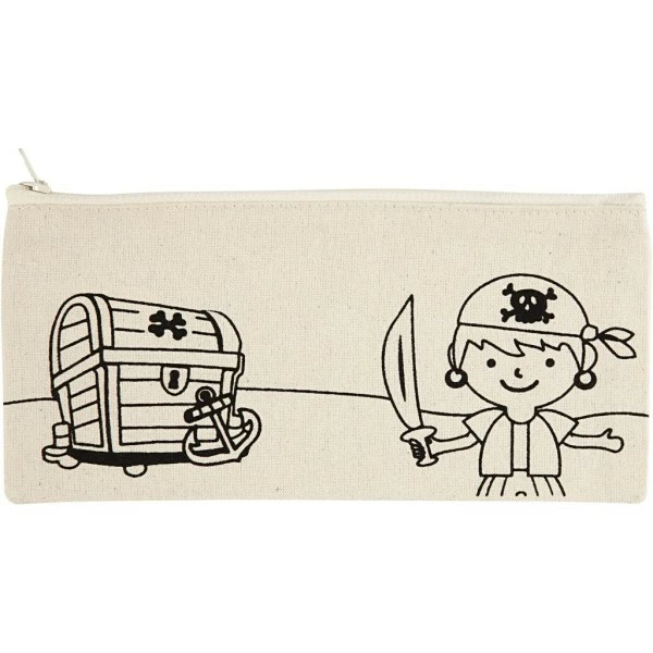 Description de Trousse en tissu à personnaliser – 9 x 21 cm – Pirate – Naturel clair