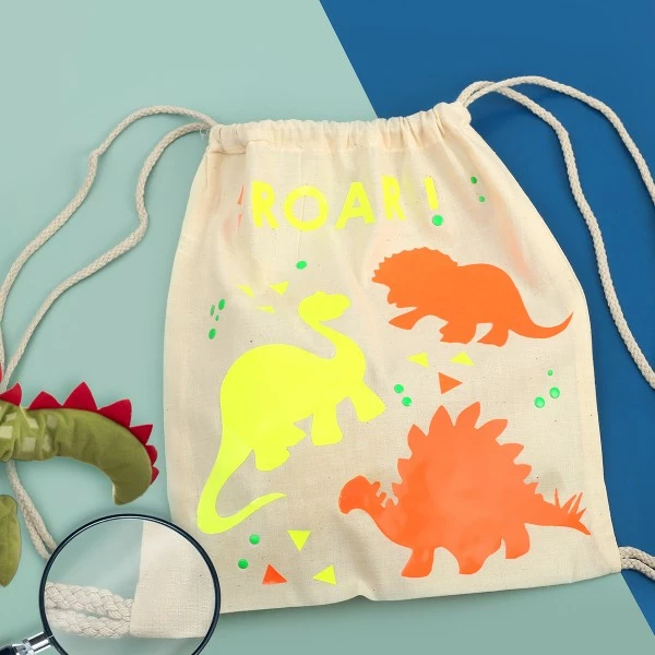 Ce Kit DIY customisation vous propose de décorer un petit sac en coton sur le thème des dinosaures pour tous les enfants aventuriers en herbe !