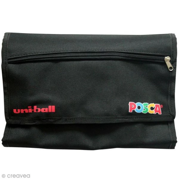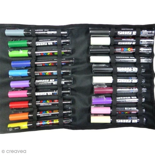 La trousse pour marqueurs Posca, en tissu Noir, peut contenir 20 feutres de la marque Posca. Vraiment très pratique, elle vous permettra de transporter tout votre matériel de dessin, et de le ranger très facilement !